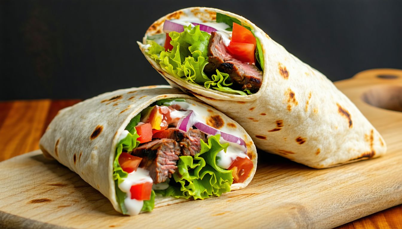 Mięso, sos, ser, hummus, warzywa*zdjęcie poglądowe