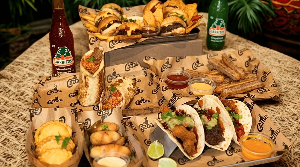 3 pszenne grillowane tortille, pieczony kurczak Achiote, smażona mozzarella, sałatka z czerwonej kapusty, guacamole, kolendra, granat.Podawane w zestawie z limonką oraz jedną salsą do wyboru