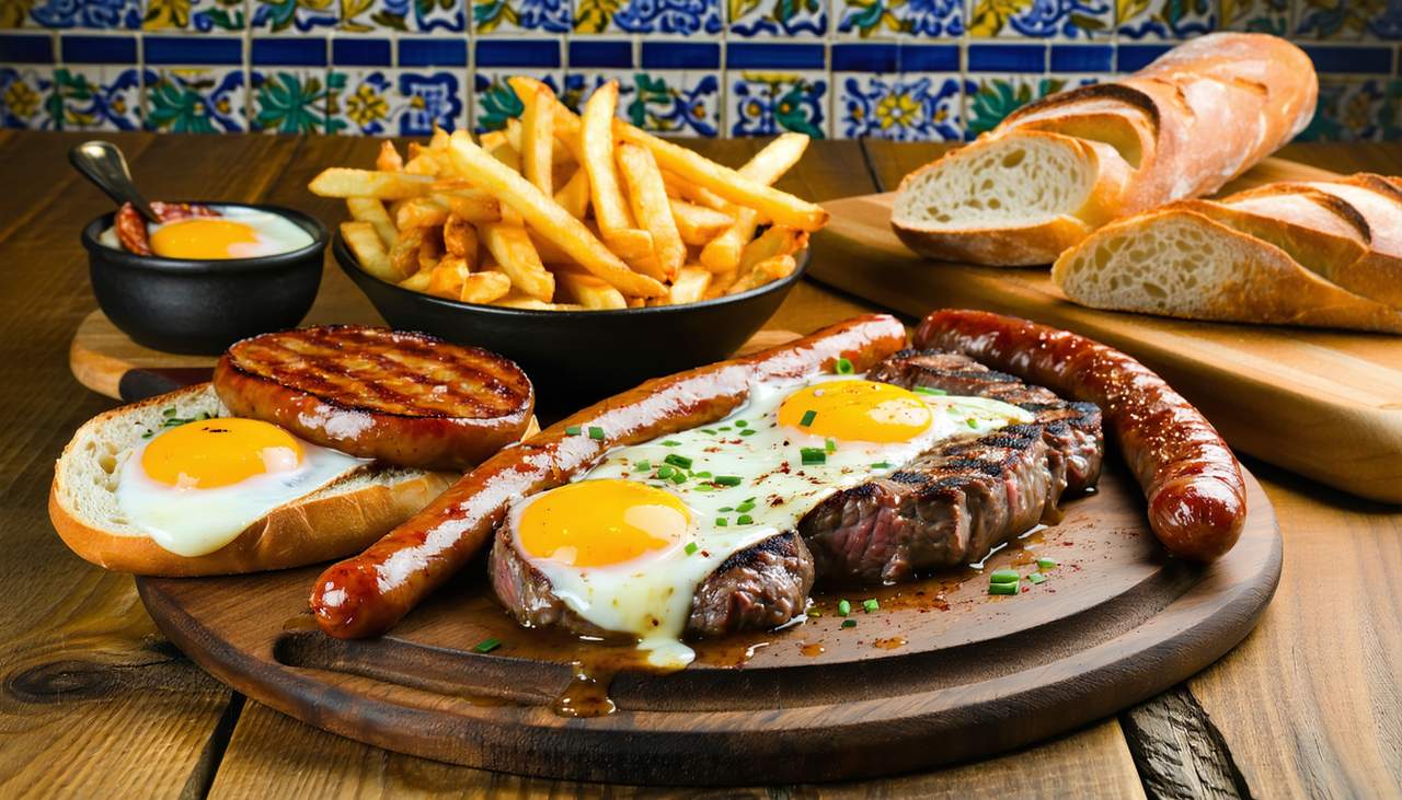 Pão, bife, fiambre, queijo, paio, chouriça, batata, Ovo