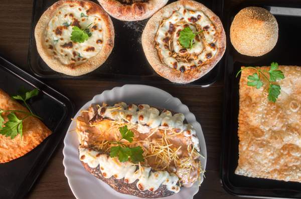 Esfiha especial de mozzarella e orégão com gotas de requeijão e pepperoni