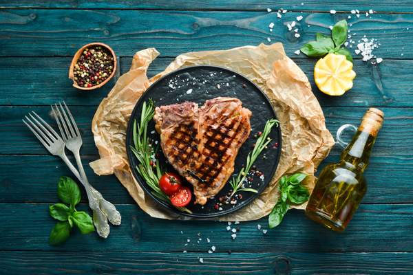 Antricot de vita , rucola , rosii cherry , parmezan , ulei de masline