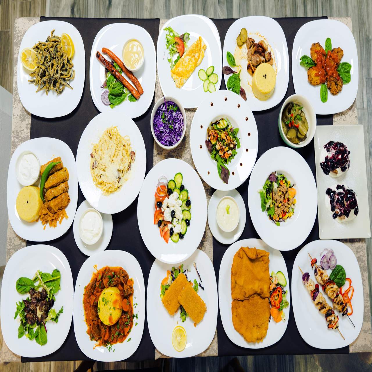pastrav 300g, macrou 300g, file de cod 200 g, merluciu 170g, crap 200g, salau 200g, hamsie 200g, mamaliga 600g , mujdei 100g- 2,270kg