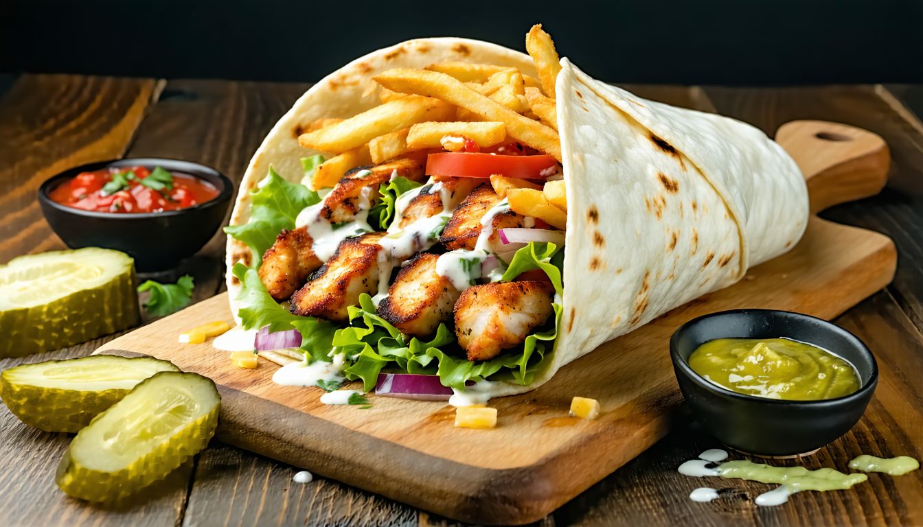 Sauces au choix, garniture au choix, frites, chawarma