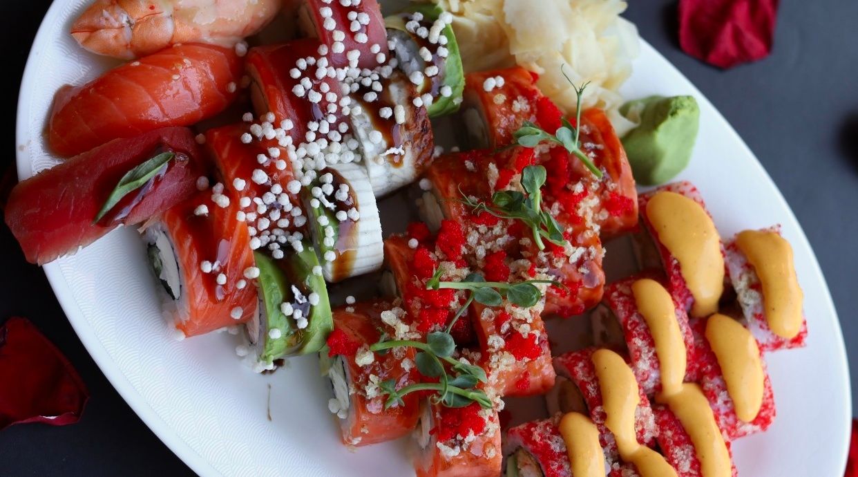 Рол з обпаленим лососем Унагі, сиром Віола, манго та Шрірача соусом, Рол з вугрем та Сніжним крабом, Рол гострий з вугрем, Кранч Рол з копченим лососем і тунцем, Рол Унагі Кацуобусі Спайсі, Рол Футомакі з копченим лососем, омлет Тамаго та авокадо