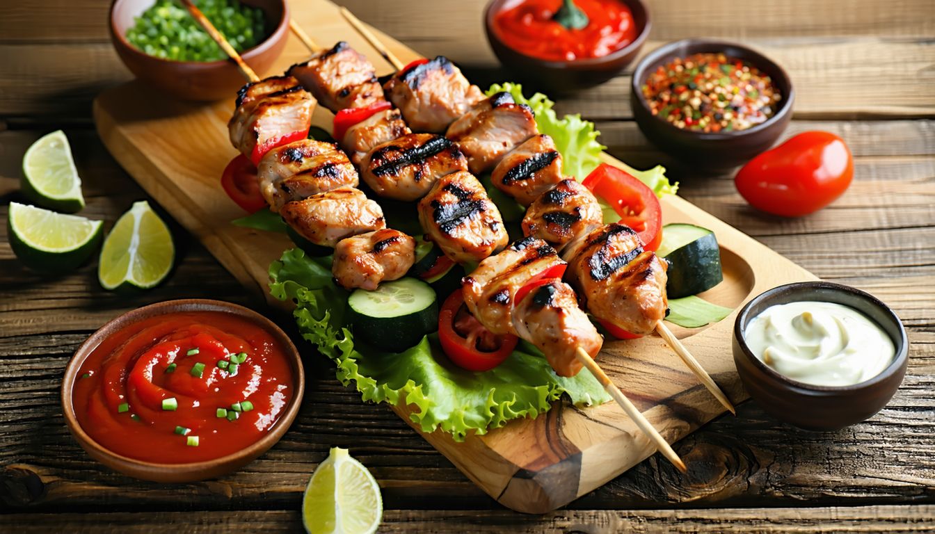 ковбаски в асортименті, куряче м'ясо, овочі. Подається зі сметаною та зеленню