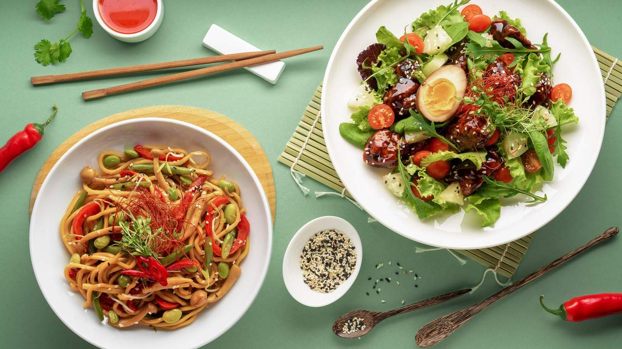 330 г Локшина, соус для "Локшини" (соєвий, устричний соуси, імбир, часник), тофу в паніровці Панко, яйце мариноване, квасоля стрючкова, перець солодкий, бамбук, гриби шімеджі, капуста савойська. 100г:161,00 ккал/Б6,32/Ж4,02/В22,14.