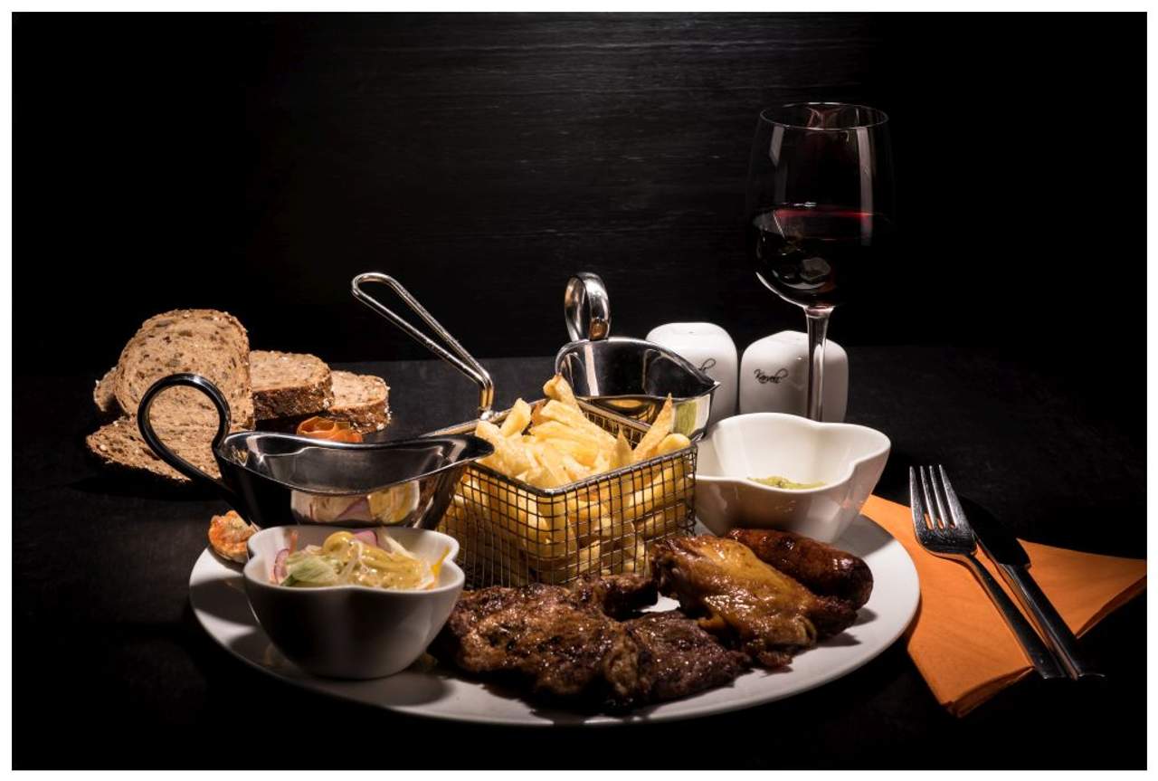 Karveli's classic plate with grilled beef steak, sausage, lamb chops and chicken served with a pair of mini pizzas, salad, chips and mango guacamole. Served with aromatic rice/potatoes (fries, mashed, baked) and vegetables of the day