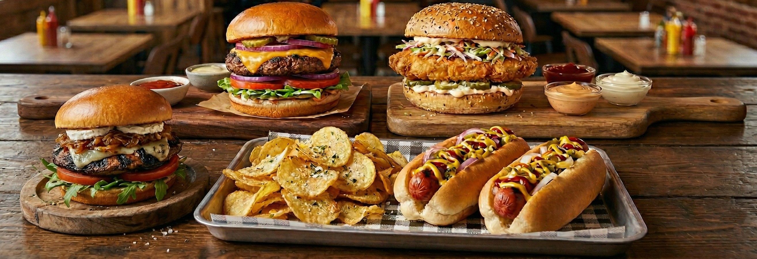 Мека бриош питка, бургер сос, лук, кисели краставички, 2 броя телешко, 2 броя чедър и кромид лук - 230г