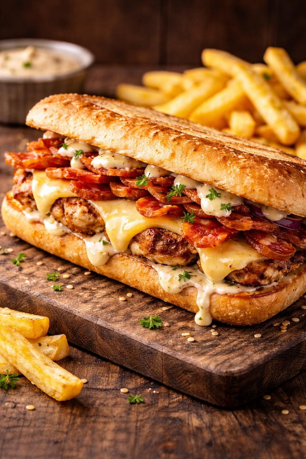 Прошуто чедър топ сирене бекон айсберг сос пържени картофи - 400г