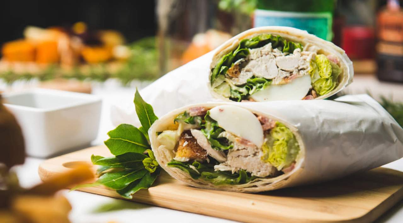 Mézclum de lechuga, cherry, tiras de pollo, aguacate y salsa de yogurt