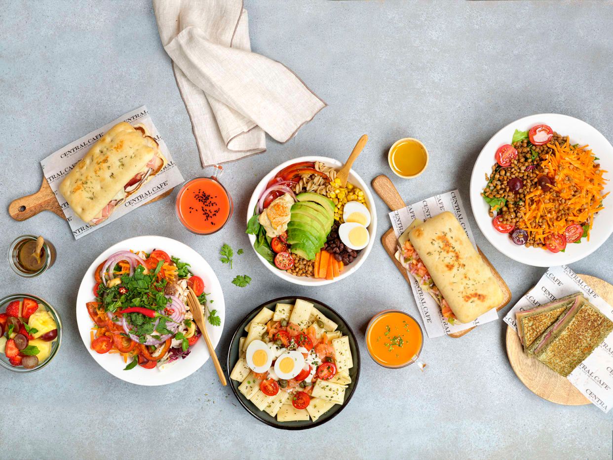 Bouquet de ensalada, guacamole, salmón ahumado, salsa tártara, zanahoria, tomate seco lima y pan de masa madre.