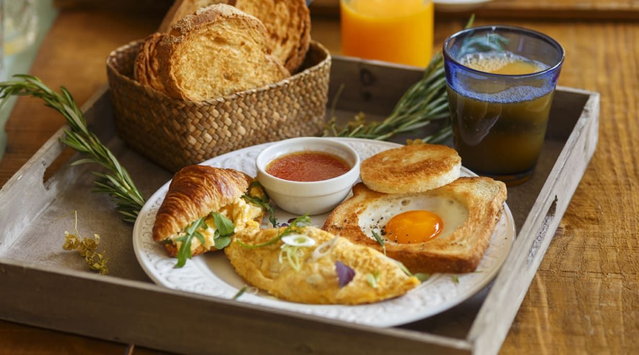 Croissant de mantequilla con jamón ibérico y queso cheddar fundido