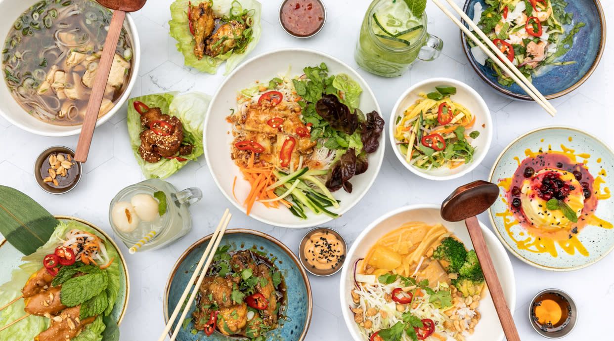 Para 2 personas. Incluye coliflor en salsa BBQ, guoi con - rollitos frescos, alitas de pollo caramelizadas, fish cake y ensalada de mango tradicional vietnamita
