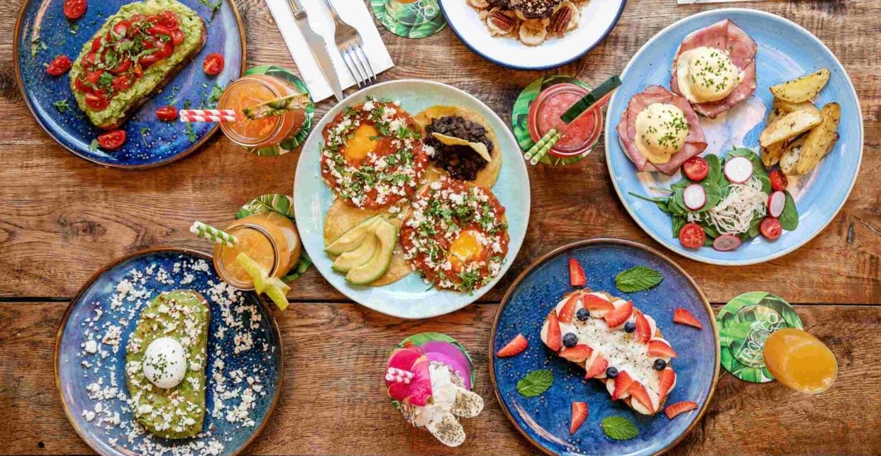Pan sin gluten con aguacate, queso fresco, huevo poché, micro mezclum, ají deshidratado y cebollino.*NO APTO PARA CELÍACOS. Puede contener trazas del mismo debido a la contaminación cruzada.