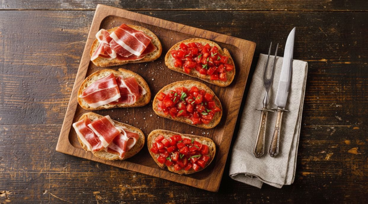 Aove, tomate, york, tortilla francesa, rulo de cabra, pimentón de la vera y orégano