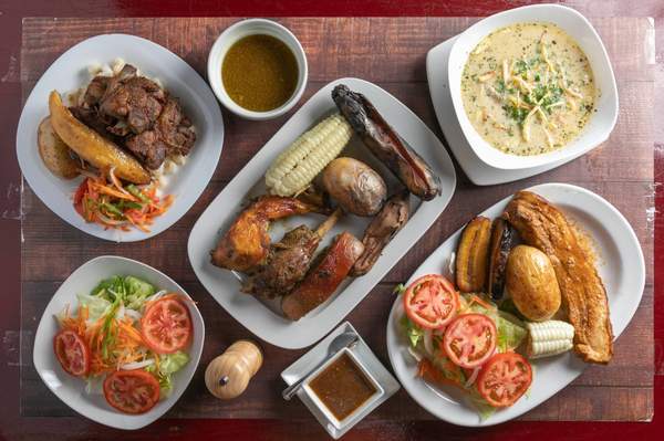 Carne de ternera deshilachada frita y crujiente. Acompañado con queso fresco de vaca, Patatas con cáscara, Mote y Huevos duros.