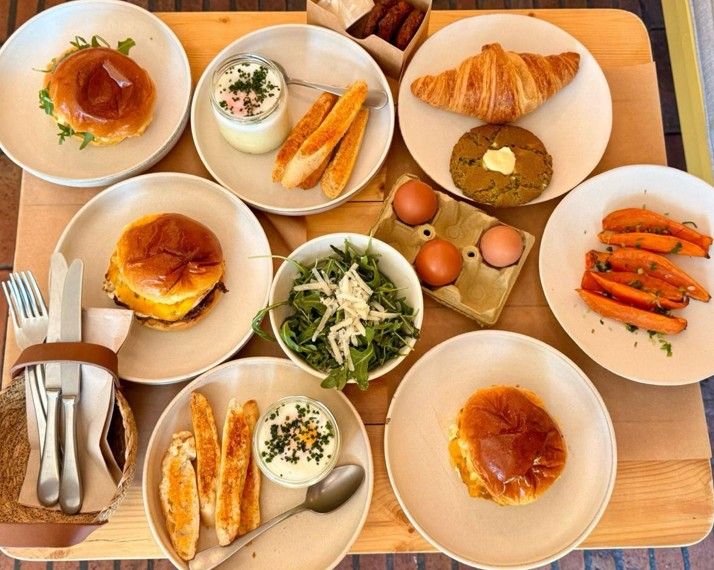 Dos huevos ecológicos cocinados a tu manera (fritos, revueltos o pochados), acompañados de brioche artesano, mantequilla y mermelada para ese toque dulce-salado que nunca falla.