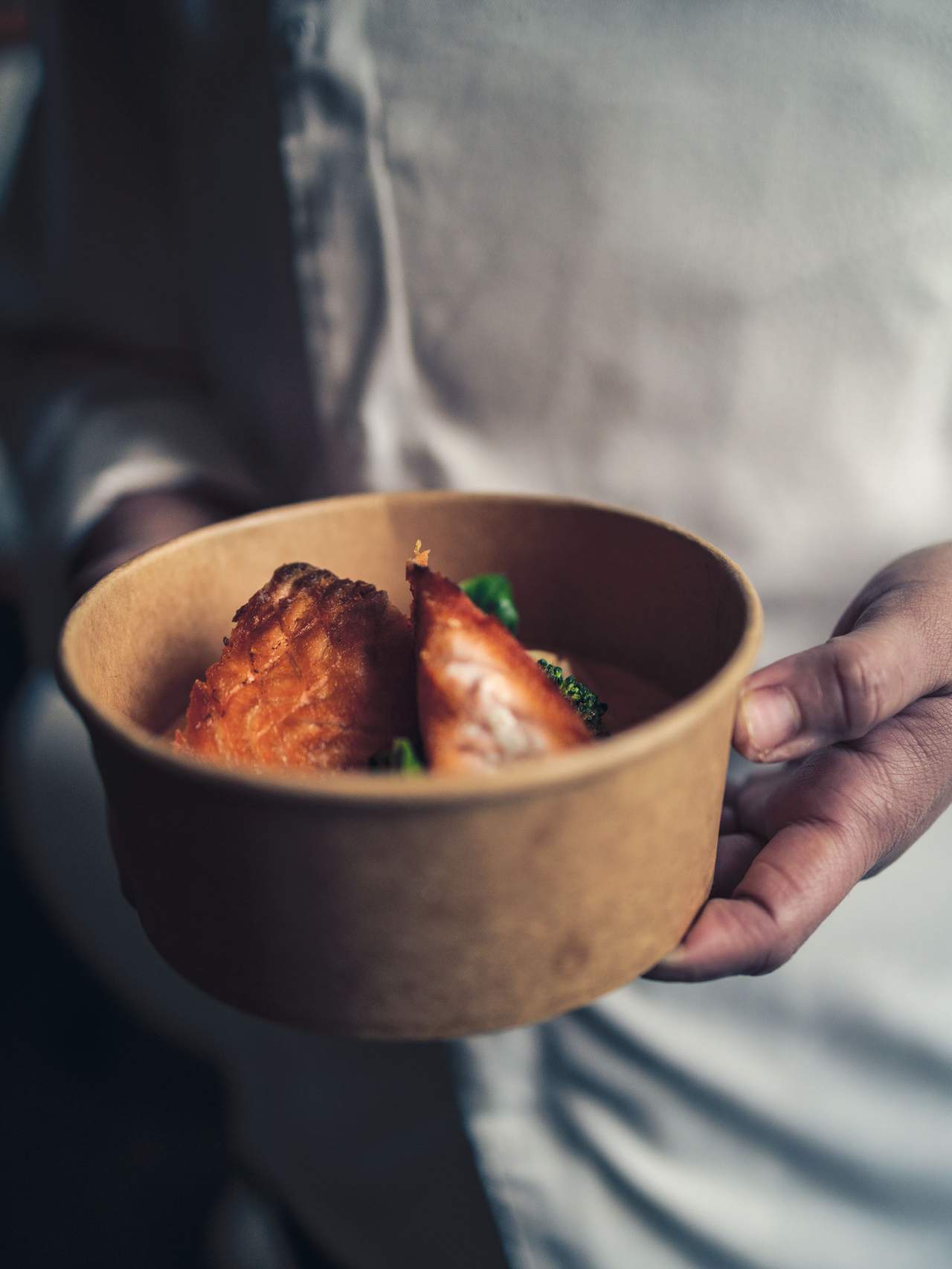 Salmón, queso cremoso, espárragos temporizado, mayonesa de kimchi casero, cebolletas, / Salmon, cheese and asparagus in tempura, kimchi mayonnaise, leeks