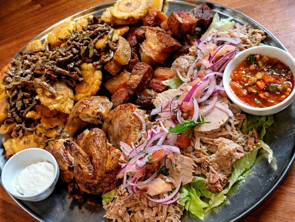 Crujientes chicharrones recién preparados, servidos con patacones, ensalada curtida y nuestras tres salsas caseras: picante, queso blanco y cilantro. Incluye Coca-Cola de 1,5 L.