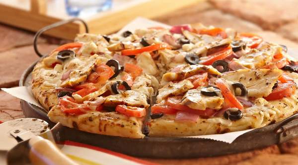 Tomate, mozzarella, orégano, champiñones y aceitunas