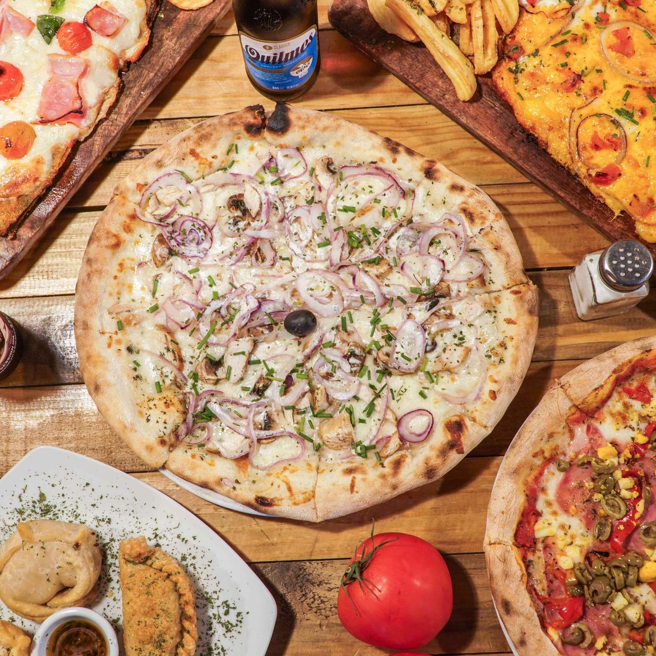 Nata, mozzarella, pollo, cebolla, champiñones, cebollino
