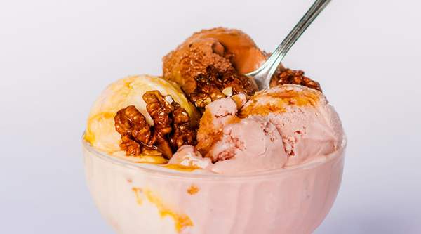 Helado de crema tostada jaspeada en formato clásico para servir en vaso o cucurucho, elaborado con productos naturales