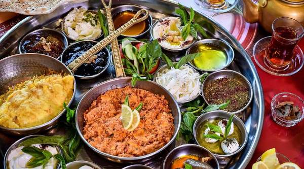 Con pan, carne y salsas