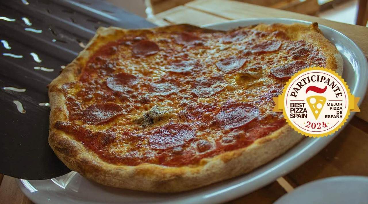 Masa elaborada con una mezcla de harinas de trigo y avena fermentada 48 horas, salsa de tomate ahumado, mozzarella fior di latte, secreto de cerdo ibérico, cebolla roja encurtida, crumble de pan negro, micro brotes y reducción de Pedro Ximénez