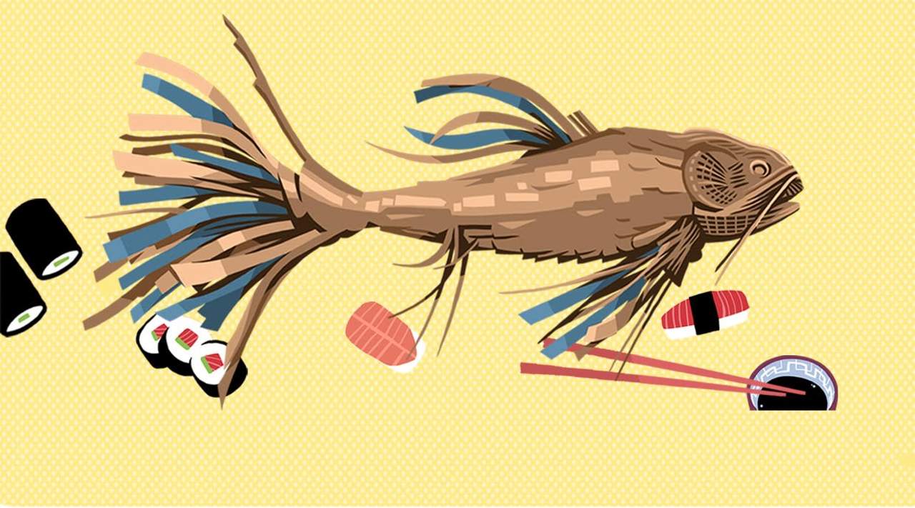 Roll de arroz con interior de langostino tempurizado, aguacate y queso crema, recubierto con corvina, salsa acevichada casera, crujiente de tenkasu y yema curada. ALÉRGENOS: gluten, huevo, pesacado, soja, lácteos, marisco y sulfitos