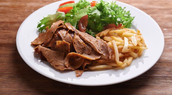 Carne de pollo o ternera, lechuga, tomate, cebolla y salsa especial