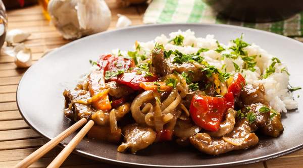 Ternera con bambú y setas chinas