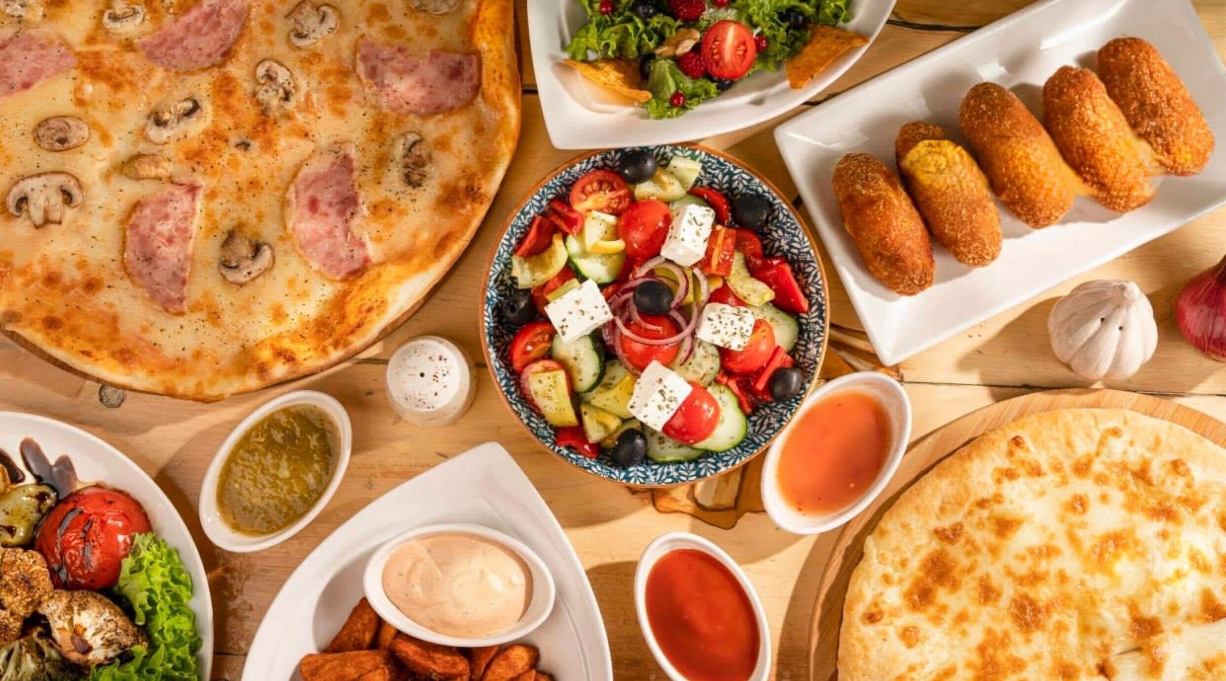 პიცის სოუსი, მოცარელა, სერველადი, ორეგანო, პეპერონის სოუსი
