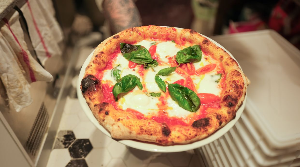 Salsa di pomodoro, mozzarella di bufala, pomodorini, basilico ed olio Bio EVO
