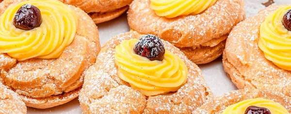 Deliziosa zeppola farcita con crema Chantilly crema Lotus e biscotti Lotus