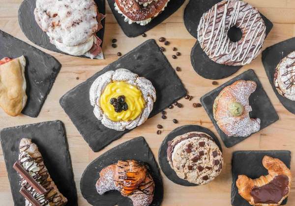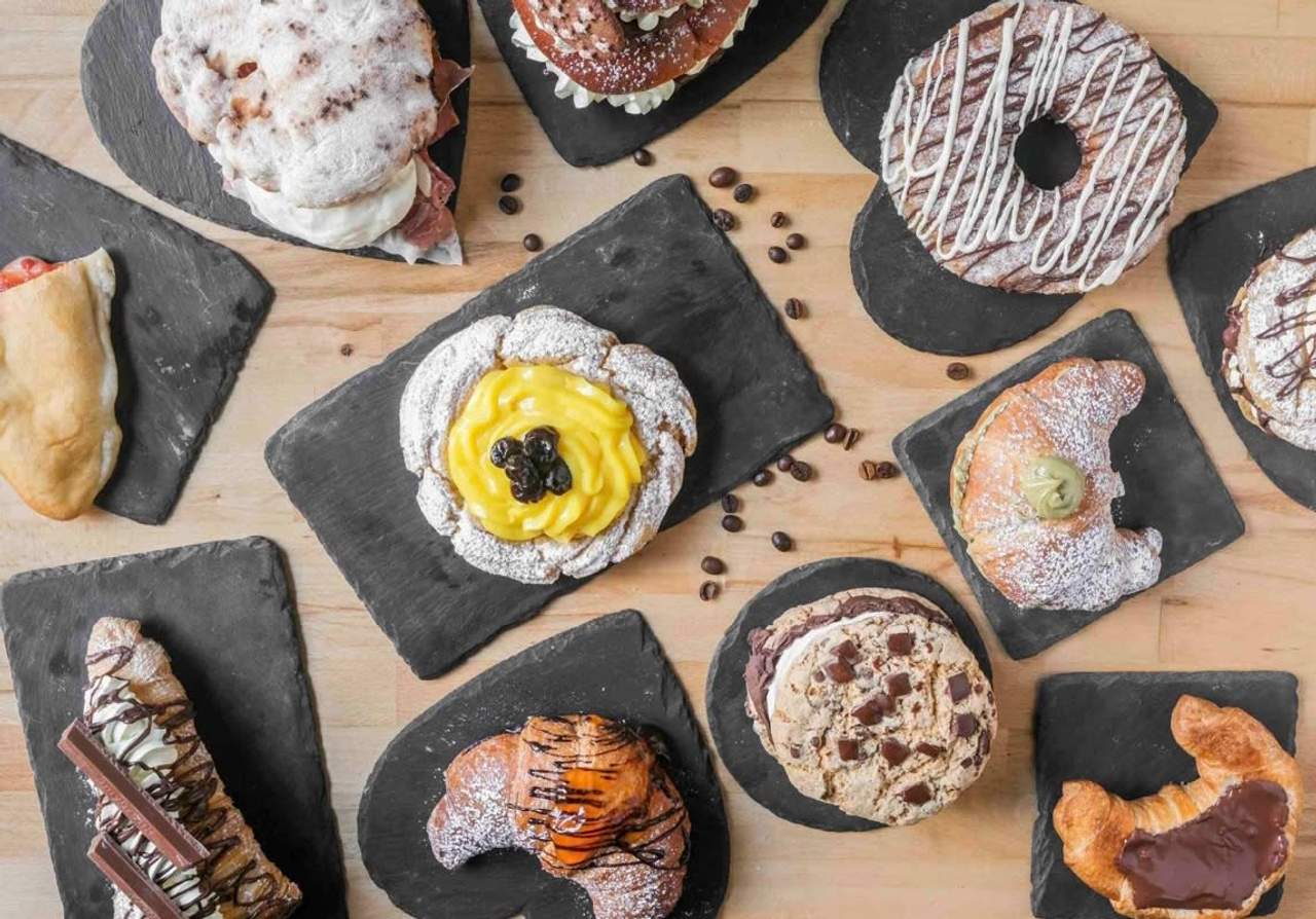 Cornetto salato con mortadella stracciata di bufala e granella di pistacchio .