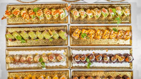 6 harumaki, 1 edamame, 1 goma wakame, 6 gyoza mix, 1 yaki udon, 4 ebi kushiyaki, 14 nigiri misto, 15 chirashi salmone, 6 ho sake, 6 ho tekka, 8 uramaki salmon cream cheese, 8 uramaki sake love, 4 uramaki sandwich, 4 taiyo box roll