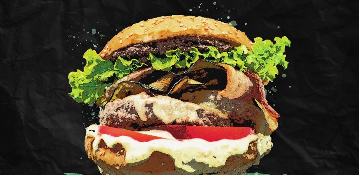 Carne piemontese, battuto di pomodoro secco, zucchine alla piastra, cheddar, pancetta croccante, salsa tartara alla Hub.