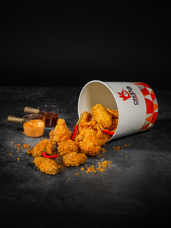 24 острых крылышек, кола 1л, фри бокс, соус кетчуп.