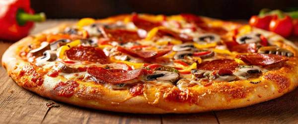 Sauce tomate, mozzarella, pepperoni, champignons frais, origan