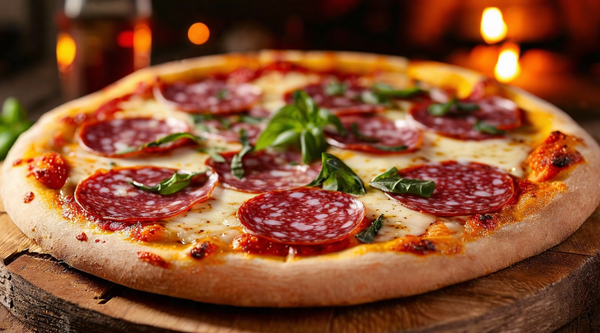 Sauce tomate, mozzarella, anchois, poivron, câpres, olives noires, origan