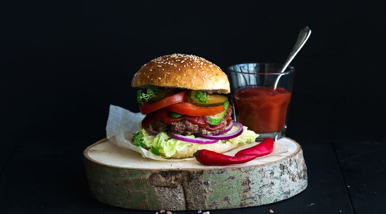 Steak viande hachée, fromage, laitue, tomate, cornichon, oignon, accompa Avec frite