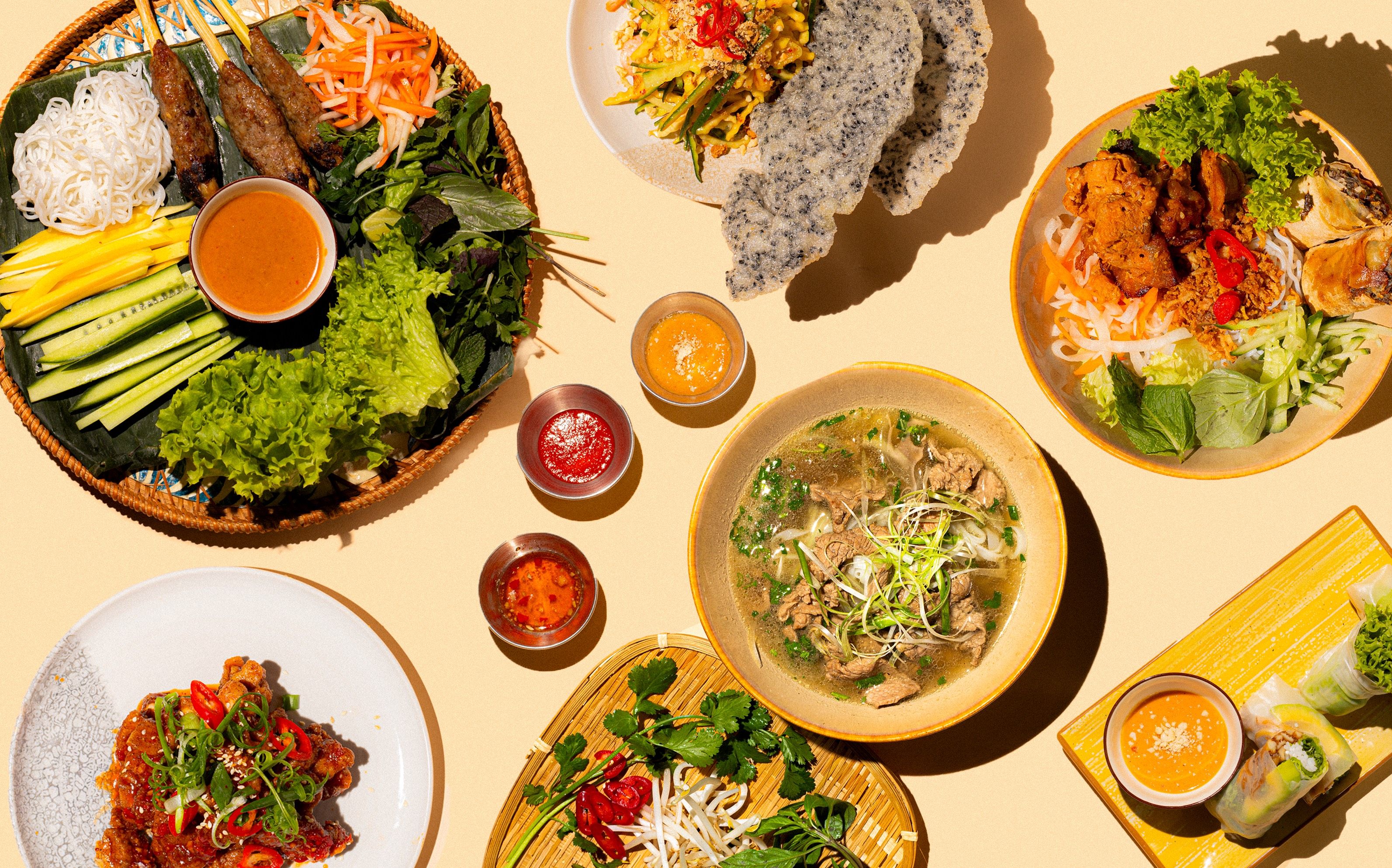 połączenie tego, co najlepsze w wietnamie - aromatyczne szaszłyki wieprzowe na trawie cytrynowej, świeże warzywa, słodkie mango i pachnące zioła, podawane z makaronem i papierem ryżowym, na bambusowej tacy