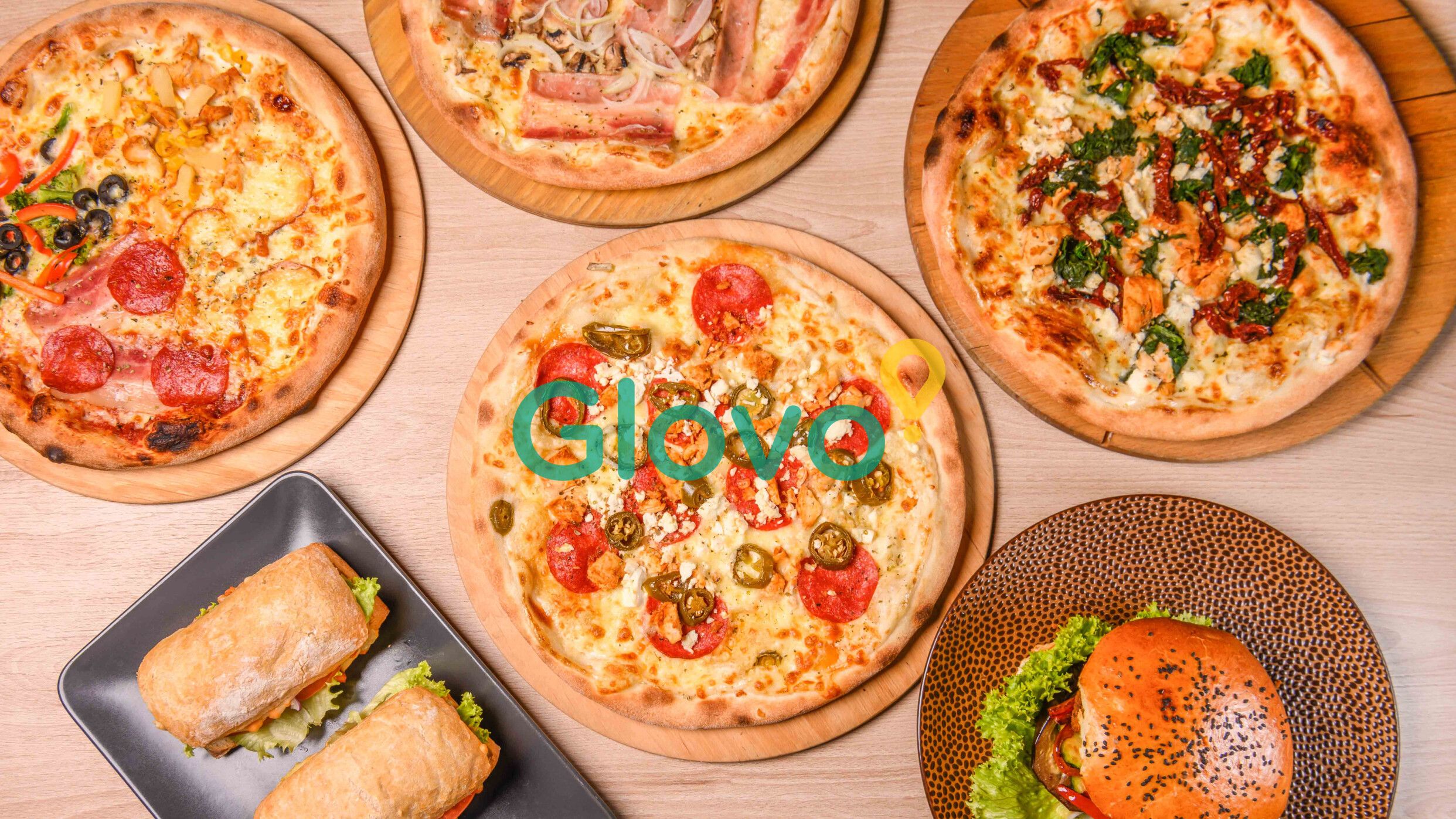 4 różne kawałki pizzy - wegetariański, serowy, mięsny i mieszany, - sos serowy