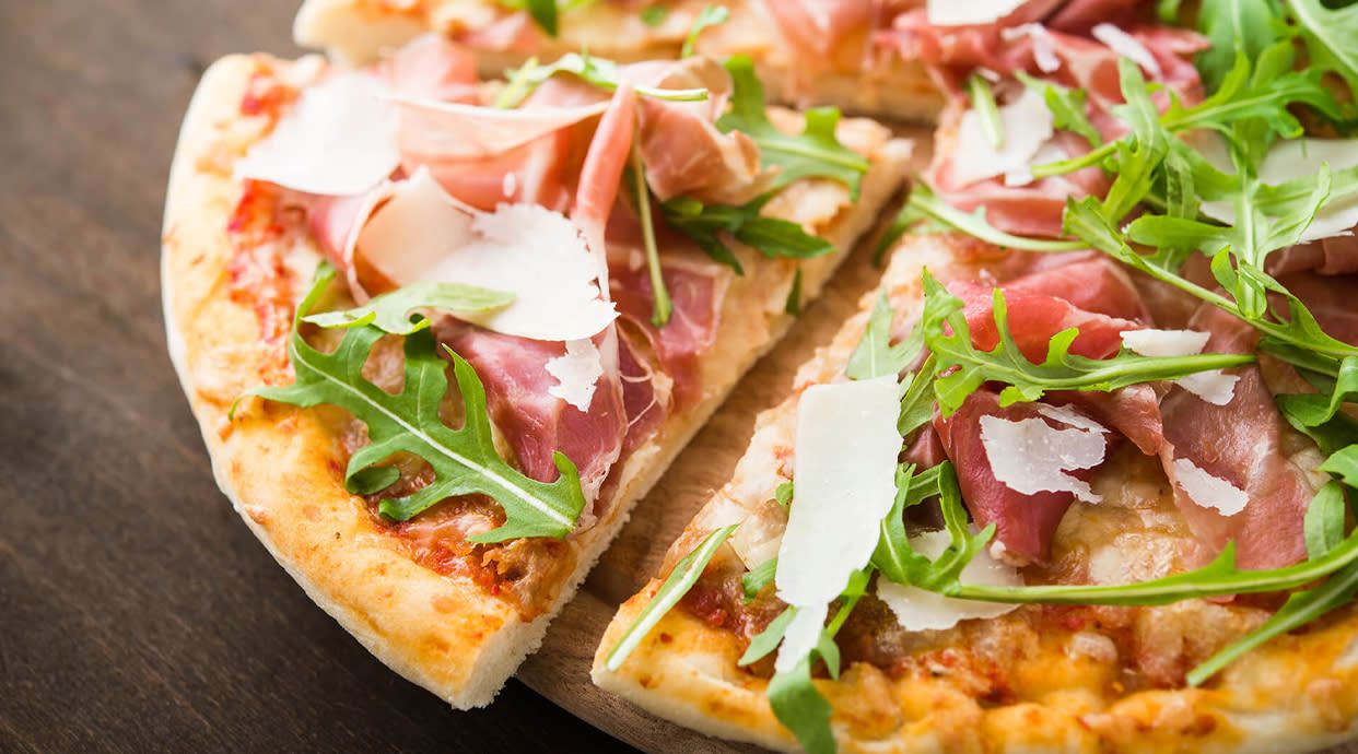 ser mozzarella, sos pomidorowy, szynka dojrzewająca, bekon, kapary, oregano mozzarella, tomato sauce, ripened ham, bacon, capers, oregano