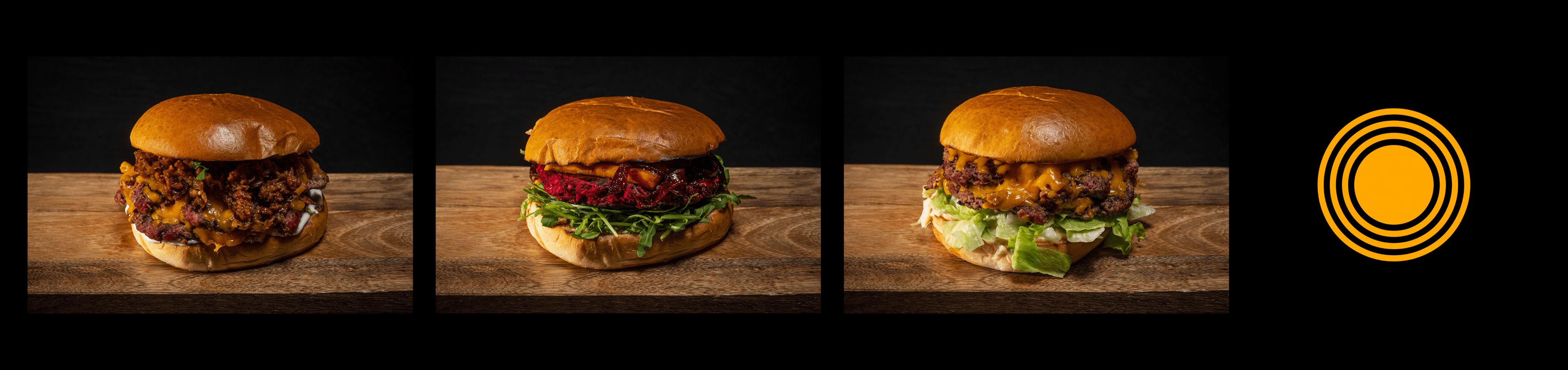 maślana bułka, soczysta wołowina, ser Mimolette, sałata lodowa, ogórek, autorski sos