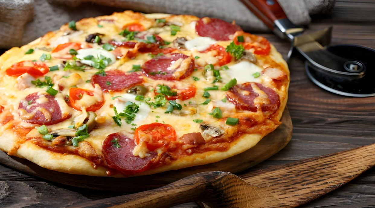 z sosem pomidorowym, serem mozzarella + dwa dodatki do wyboru Do wyboru: brokuł, cebula, papryka, pieczarki, pomidorki.