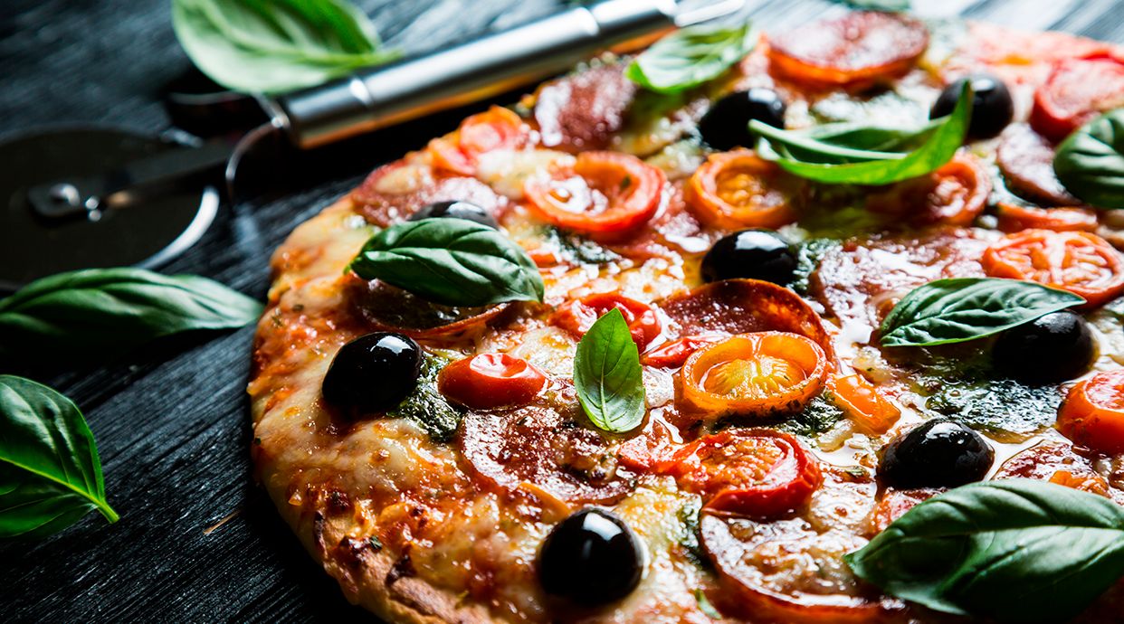 ser, pieczarki, cebula, pomidor, czosnek, ogórek, oliwki zielone