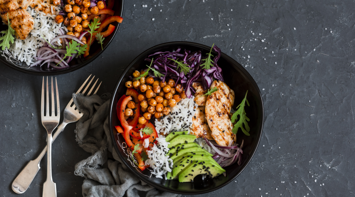 Bowl z ryżem i grillowanym kurczakiem