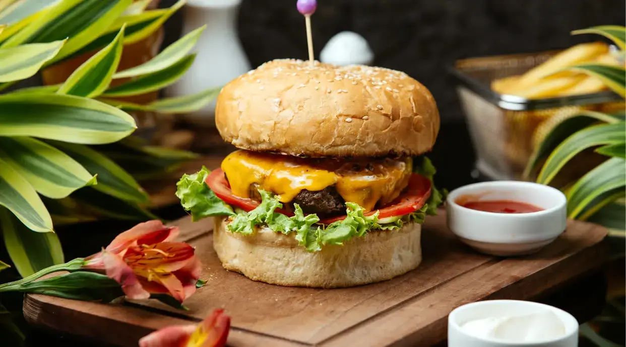Soczysta wołowina 250 gram w przyprawie meksykańskiej podawana z frytkami oraz sałatką grecką plus ostry sos