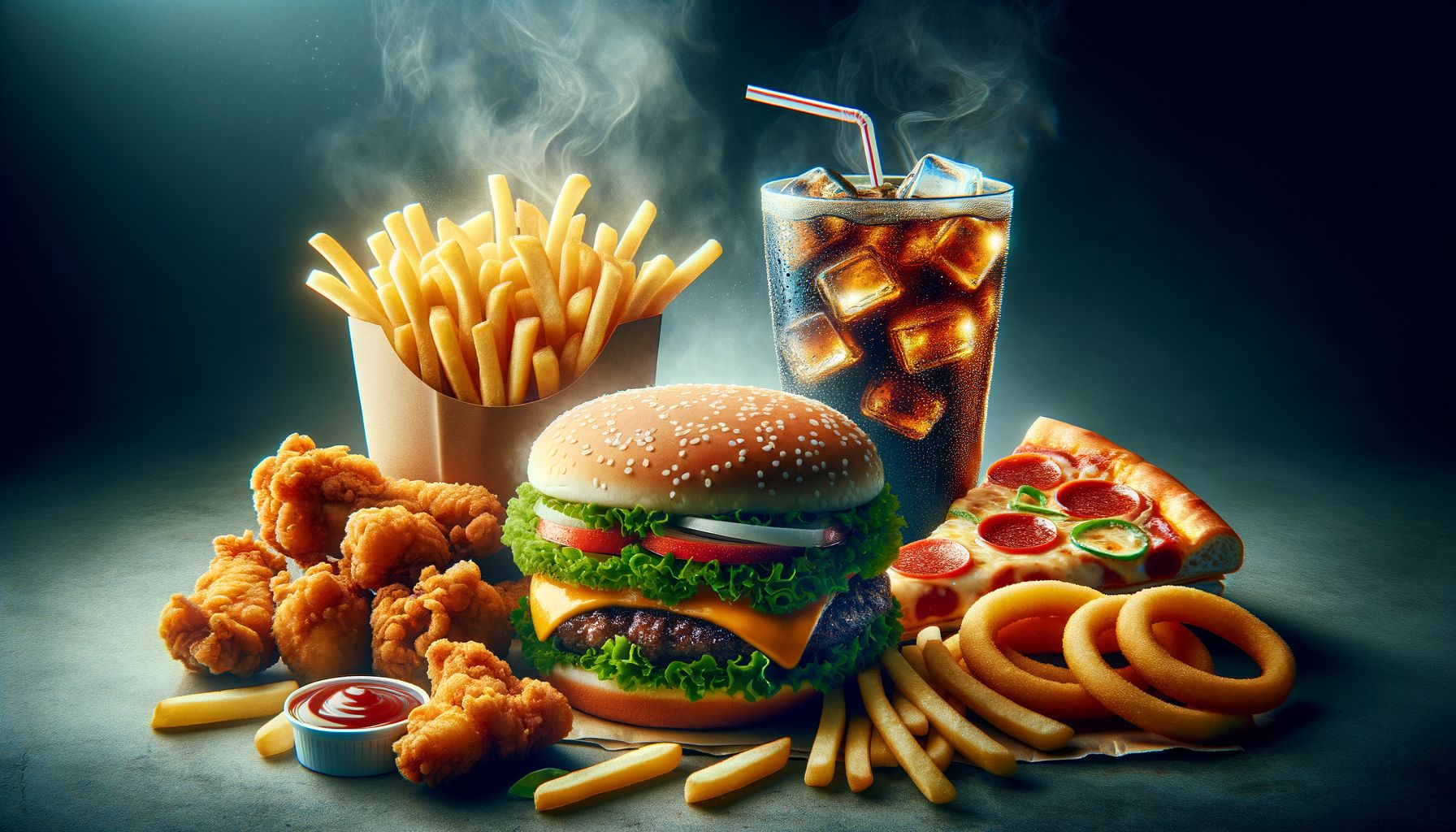 Stripsy, frytki, sos, ser, surówka *zdjęcie poglądowe